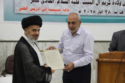 این بزرگداشت در حاشیه جشنواره فرهنگی سالانه کریم اهل بیت (علیه السلام) با همکاری آستانهای مطهر حسینی و عباسی صورت گرفت. جشنواره مذکور؛ چهارشنبه شب به مناسبت میلاد امام حسن مجتبی (علیه السلام) در بوستان های مزار رد الشمس در شهر حله مرکز استان بابل؛ برگزار گردید.