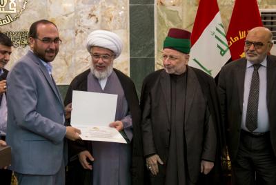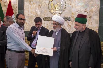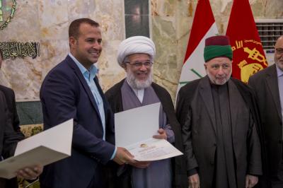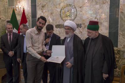 من الرّحاب الطاهرة لحرم الإمام الحسين(عليه السلام) وبحضور المتولّي الشرعي للعتبة الحسينيّة المقدّسة سماحة الشيخ عبد المهدي الكربلائي (دام عزّه) وأمينها العام السيد جعفر الموسوي (دام تأييده) كرّمت اللّجنةُ التحضيريّة لمهرجان ربيع الشهادة الثقافيّ العالمي الرابع عشر الذي انعقد تحت شعار: (بالإمام الحسين -عليه السلام- ثائرون وبالفتوى منتصرون) في شعبان الخير اللّجانَ الفرعيّة المنبثقة منها، وذلك لما بذلوه من جهد وتفانٍ في إقامة هذا الملتقى والتظاهرة الثقافيّة الحسينيّة التي تطلّ منها مدينةُ الإمام الحسين(سلام الله عليه) على العالم.