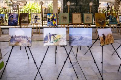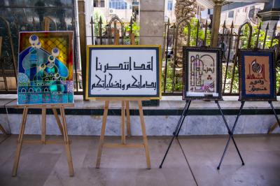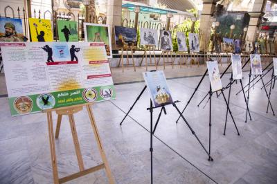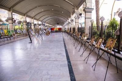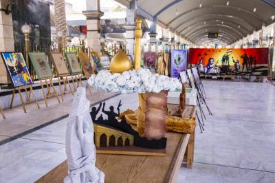 Unter der Teilnahme einer Elite von Künstlern aus Karbala und weiteren Provinzen, fand im Bereich zwischen den beiden heiligen Schreinen eine große Ausstellung mit Kunstwerken und Bildern statt, die an die Heldentaten des Haschd Asch-Schabi und der Sicherheitskräfte in der Verteidigung des Irak und seiner Heiligtümern sowie der Unterstützung der vertriebenen Familien erinnern.