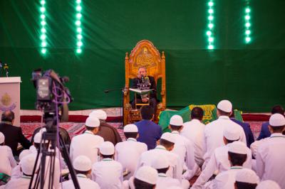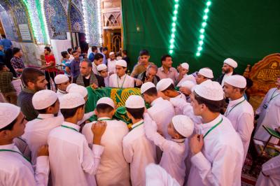 Mukaddes Hz. Abbas (Allah’ın selâmı üzerine olsun) Türbesi Kur’ân-i Kerîm Enstitüsü’ne bağlı Kurra Yetiştirme Merkezi tarafından düzenlenen “Tilavet Tahtı” projesi kapsamında organize edilen haftalık mahfiller devam ediyor. Hz.İmam Rıza’nın (O’na selâm olsun) mübarek viladeti hatırasının sevincini henüz taze olarak hissedildiği bu günlerde proje kapsamında bu sefer Hz.İmam Rıza’nın (O’na selâm olsun) Mukaddes Ziyaretgâhı’ndan bir heyet misafir edildi. Ziyaretçi heyet Mukaddes Ziyaretgâh’ın Kubbe-i Şerîfesi’nin sancağını da beraberinde getirdi.
