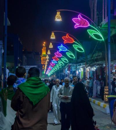 The street of Saheb az-Zaman [Master of the Time] (may Allah hasten his holy reappearance) is one of the streets adjacent to the two holy shrines of Imam al-Hussayn and his brother Aba al-Fadl al-Abbas (peace be upon them), which is one of the old commercial streets and is a destination for most visitors from inside and outside Iraq for shopping, as well as being one of the streets that lead to the old city neighborhoods and the link between two important streets. This is what led the Electricity Division at the Department of the square between the two holy shrines of Imam al-Hussayn and Aba al-Fadl al-Abbas (peace be upon both of them) to contribute to its development, by putting the modern artistic lamps to highlight the beauty of the sacred place.