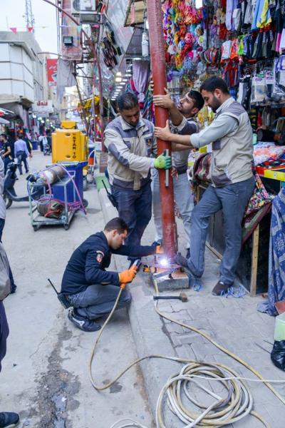 The Supervisor of these works; Engineer Tha'er Adhar Hashem stated: "The Electricity Division of the Department of the square between the two Holy shrines has successfully completed the project of lighting the street of Imam Saheb az-Zaman (Peace be upon him), as the lighting and rehabilitation of this street contribute greatly to highlighting the beauty of this street, because of the importance of this street as it is adjacent to the area between the two Holy Shrines, and includes large heritage markets visited by many visitors from inside and outside Iraq. And this great achievement is one of the series of projects implemented by cadres of the Electricity Division."
