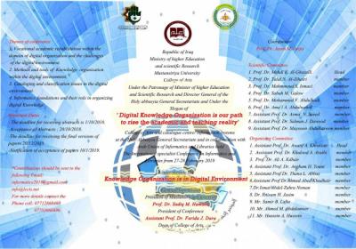 The Center for Indexing and Information Systems of the Library and House of Manuscripts of the al-Abbas's (p) holy shrine and the Faculty of Arts at al-Mustansiriya University announced the establishment of the International Conference Specialized on Information and Libraries in collaboration with the Arab Federation of Libraries and Information (A'lam) under the slogan: (Organizing Digital Knowledge for the Advancement of Scientific and Educational Reality) and under the title: (Knowledge organization in the digital environment), for the period (27 - 28 February 2019).