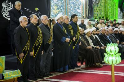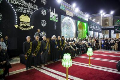 Avec la participation d’une délégation du sanctuaire saint Al Abbas et dans une atmosphère de tristesse et de chagrin et d’amour et de fidélité au prophète Mohammed et à sa lignée vertueuse (p), les fidèles se sont rassemblés dans la nef sainte Kadimite pour la commémoration du martyr de l’imam Al Jawad (p), où le secrétariat général du sanctuaire saint Al Kadimiya a organisé le vendredi soir (27 Dhul Qi’dah 1439 AH correspondant au 10 Aout 2018 la cérémonie du changement des drapeaux des deux dômes des deux imams Al Jawadaynes (p) avec les drapeaux de deuil, en présence de représentants des sanctuaires et lieux saints et représentants du Diwane du Waqf Chiite et un nombre de responsables de la sécurité, de personnalités religieuses et sociales et un grand nombre de visiteurs.