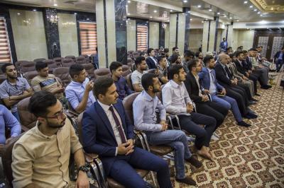 The closing ceremony was held at the complex Hall of the Imam al-Hadi (peace be upon him). It began with a wonderful recitation of verses of the Holy Quran by the student Ali al-Hamdani and then reciting Surat al-Fatiha in memory of the martyrs of Iraq. Followed by the word of the Division of University Relations in the Public Relations Department at the al-Abbas's (p) holy shrine, delivered by Mr. Azhar al-Rukabi, in which he stated: