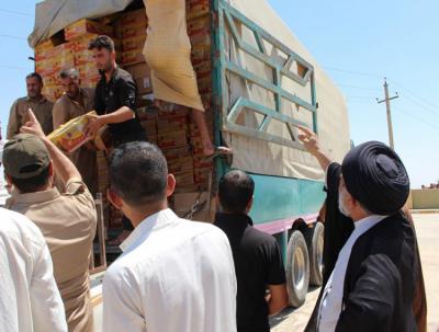 Kumbuka kua misafara ya kugawa misaada inayo fanywa na kamati hii bado inaendelea chini ya ratiba maalumu katika hema za wakimbizi au katika miji iliyo kombolewa, kwa ajili ya kupunguza machungu ya familia hizo na kuwafanya wahisi kua Marjaa dini mkuu ndio kimbilio sahihi la wairaq wote bila kujali tabaka zao na mielekeo yao, na kuondoa picha mbaya inayo sambazwa na maadui.