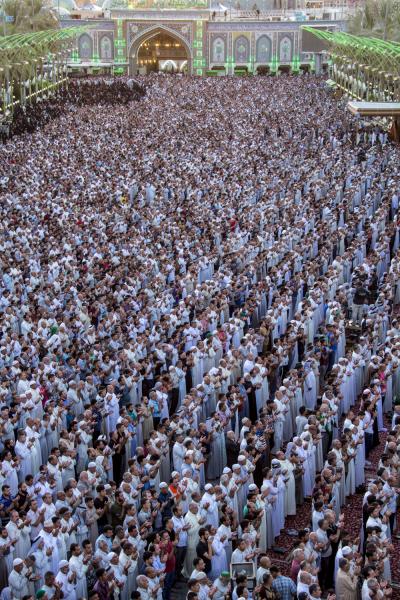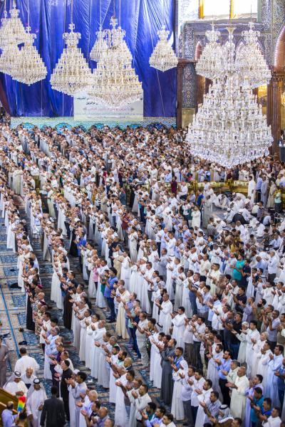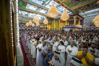 De nombreuses prières de l’Aïd ont eu lieu consécutivement dans le sanctuaire d’Aba al-Fadl al-Abbas (que la paix soit sur lui) à cause du grand nombre de fidèles qui venaient accomplir ces rituels. La même scène a été observée dans le sanctuaire du maître des martyrs; Aba Abdellah al-Hussein (que la paix soit sur lui).