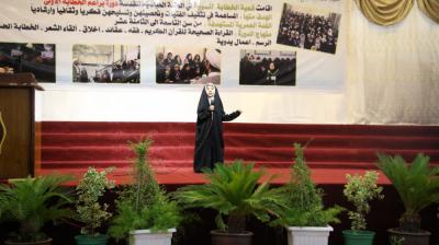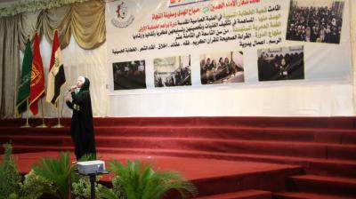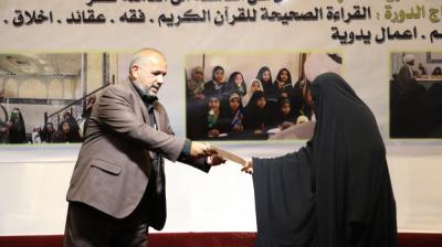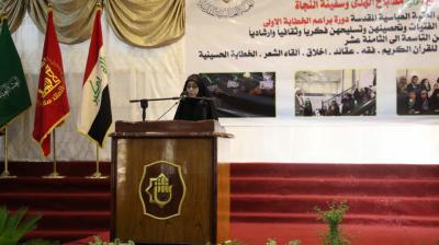 مراسم اختتامیه در سالن مجتمع شیخ کلینی با حضور نمایندگانی از آستان مطهر عباسی برگزار شد. در این مراسم، خانم زهراء جاسم، یکی از شرکت کنندگان این دوره به نمایندگانی از بانوان دیگر به سخنرانی پرداخت و از آستان مطهر عباسی و مسئولان برپایی این دوره برای برگزاری چنین دوره مهمی مراتب قدردانی و تشکر خود را اعلام کرد و اظهار داشت: ما تلاش خواهیم کرد که نتایج این دوره را به صورت عملی در زندگی خود اجرا نماییم.