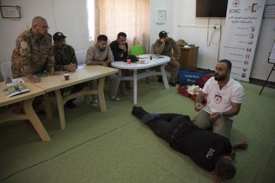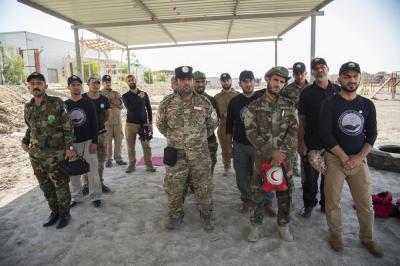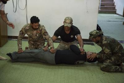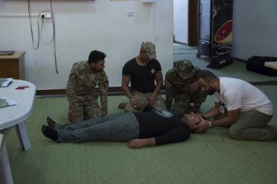 Der Leiter der Al-Kafeel Akademie, Sayed Murtada Al-Ghalibi, erklärte im Gespräch mit dem Al-Kafeel Netzwerk: „Die Al-Kafeel Akademie für militärisches Training und Erste-Hilfe der Heiligen Abbasitischen Stätte hat in Zusammenarbeit mit einer Reihe von Trainern des Internationalen Roten Kreuzes einen intensiven Erste-Hilfe-Kurs in der Akademie organisiert. Zielgruppe dieses Kurses waren Kämpfer der Kampftruppe Al-Abbas (Friede sei mit ihm). Der Kurs fand drei Tage lang fünf Stunden täglich statt . Es wurden unter anderem eine Reihe von internationalen Gesetzen und Vorschriften zum Schutz der Zivilbevölkerung, der Verwundeten und der unbewaffneten Menschen in Kampf- und Konfliktgebieten erläutert. Auch das Komitee des Roten Kreuzes stellte seine Arbeit durch einen Überblick über die Organisation und ihre verschiedenen Aktivitäten und die humanitäre Arbeit in vielen Ländern vor. Diese Zusammenarbeit gilt als die erste ihrer Art. Im Kern setzte sich dieser Kurs mit Grundlagen der Ersten Hilfe und Methoden der Rettung und Behandlung von verschiedenen Arten von Verletzungen während der Schlacht auseinander. Insgesamt nahmen 25 Kämpfer der Kampftruppe Al-Abbas (Friede sei mit ihm) teil."