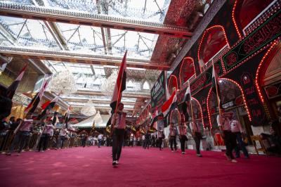 During their march, they have recited and echoed revolutionary lamentations and slogans glorifying this holy blood that illuminated the world, waving banners praising the Imam (peace be upon him) and calling for the occasion to be an inspiration for human values.