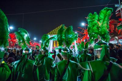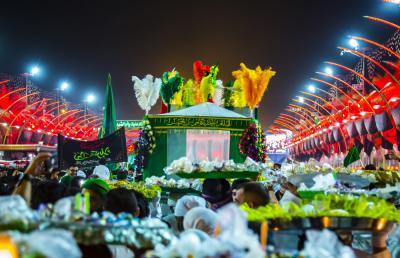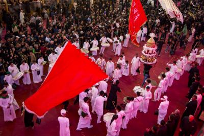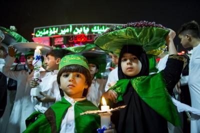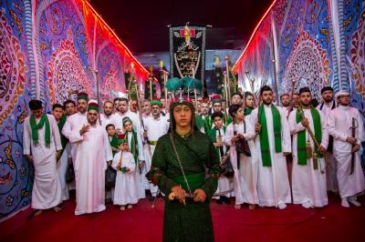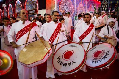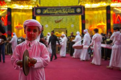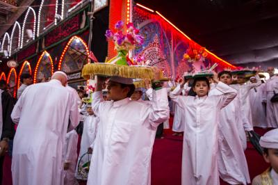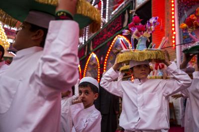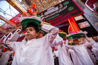 These young boys represent the person of al-Qassem (peace be upon him) and his wedding in the paradise, while others carry a ship or a dome, as well as other things.