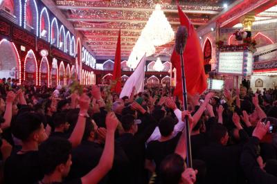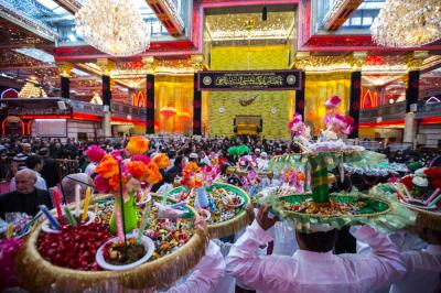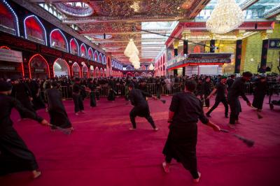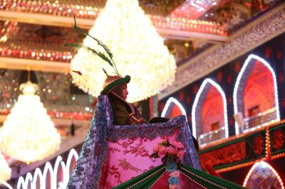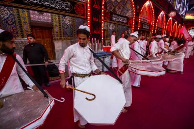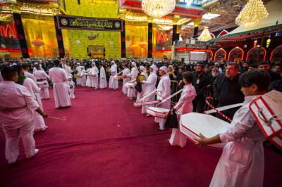 The Al-Abbas's (p) holy shrine witnesses since last night, the condolences' processions commemorating his martyrdom, accompanied with actors representing him (peace be upon him), and chanting elegies about the heroism of this brave boy who have sacrificed himself for the sake of his uncle Al-Hussayn (peace be upon him), repeating the famous verses he recited when he went to the battlefield: