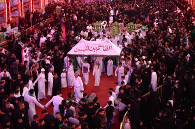 The Karbala condolences processions commemorated on the eve and day of al-Qassem son of al-Hassan (peace be upon both of them) with rituals they have practiced for hundreds of years, as the mourners in the condolences processions march while wearing while cloths and carrying candles.