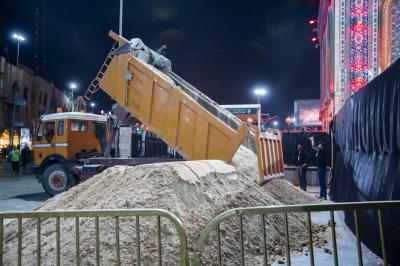Ces travaux sont réalisé du fait que la nef est inférieur à la zone environnante, et a été couverte de sable pour unifier le niveau afin qu’il est pas de chute des visiteurs ou des processions, et sur le sable a été posé la mouquette afin de garder la propreté de la nef sainte et ne pas avoir de cas de glissage dans le cas où il y a des bousculades.