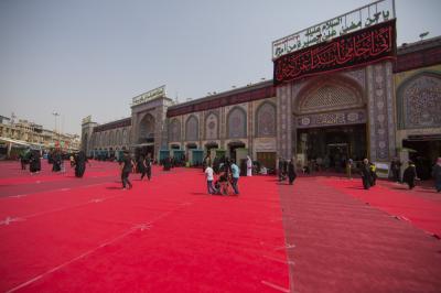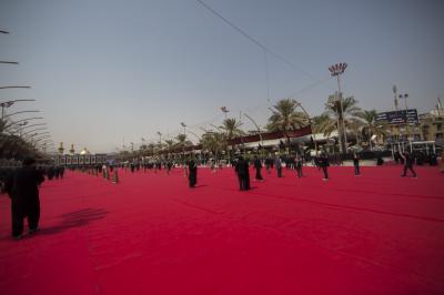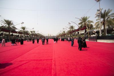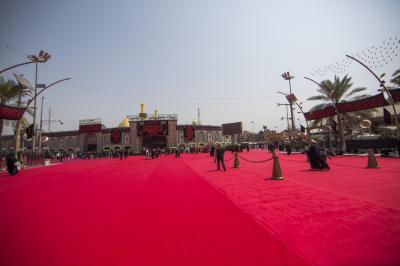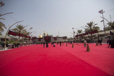 Among the preparations for the rituals of Ashura of Imam al-Hussayn (peace be upon him), including the condolences procession of Rakdhat [run of] twayreej, the Department of between the two holy shrines of the two holy shrines of Imam al-Hussayn and of al-Abbas (peace be upon both of them), as part of the service works assigned to it during this Ziyarat, to cover the middle square between the holy shrines of Imam al-Hussayn and of his brother Aba al-Fadl al-Abbas (peace be upon both of them) with twenty thousand square meters of red carpet, and same area of nylon that was put beneath is as the yard is coated with marble, which hinders the movement of the millions mourners participating in the mourning ritual of Rakdhat [run of] Twayreej.