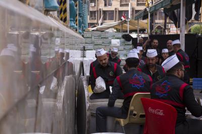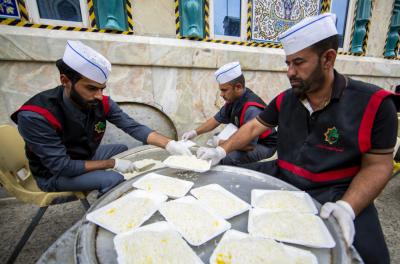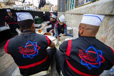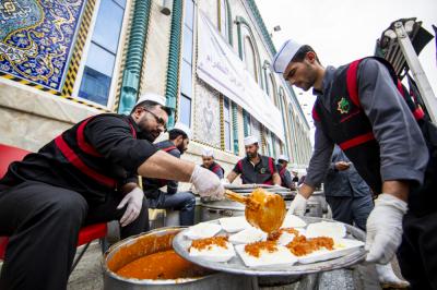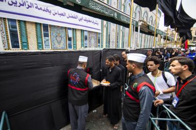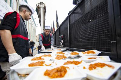 Suivant son plan de service, préparé par le département du restaurant hôte du sanctuaire saint Al Abbas (p) pour les visiteurs d’Achoura, préparer et fournir des milliers de repas et les distribués aux lieux de distributions des repas, et ces repas ne se limites pas aux visiteurs mais aussi le personnel et les volontaires en plus des invités du sanctuaire saint.