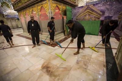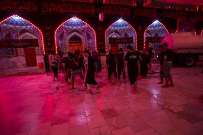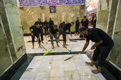 بعد أن أنهت حشودُ الزائرين مراسيمها الخاصّة بزيارة عاشوراء في يوم العاشر من محرّم، وما سبقها من فعاليّات عزائيّة خاصّة بإحياء أيّام وليالي عاشوراء التي استمرّت لأكثر من عشرة أيّام، شرع خدّامُ أبي الفضل العبّاس(عليه السلام) من العاملين في قسم رعاية الحرم الشريف وشعبة السادة الخدم ومَنْ ساعدهم من باقي أقسام العتبة العبّاسية المقدّسة بإجراء أعمال التنظيف والإدامة لحرمه وصحنه المطهّرين.