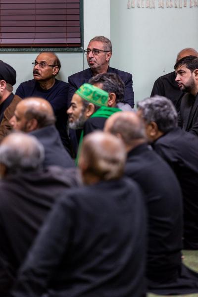 جاءت بعد ذلك كلمةٌ أخرى لمسؤول وفد العتبة العبّاسية المقدّسة الدكتور رياض العميدي استهلّها بتقديم التعازي في ذكرى شهادة الإمام الحسين(عليه السلام)، موضّحاً: "إنّ نهضة الإمام الحسين(عليه السلام) وثورته لم يشهد مثلها التاريخ، فكانت باقيةً خالدة بخلود الدهر؛ لأنّها قدّمت مشروعاً حضاريّاً ولم تكن حدثاً عابراً، بل كانت منهجاً تغييريّاً شموليّاً لإحداث نقلة نوعيّة في حياة الأمّة، وكان المشروع في كربلاء قد أصبح مشروعاً يتزوّد منه ويرتوي جميعُ الأحرار في العالم، ومنهم أنتم يا من هجرتم دياركم"، كما تطرّق العميدي الى مقولة (أبد والله يا زهراء ما ننسى حسيناه) موضّحاً: "إنّ هذه المقولة هي بمثابة عهدٍ وقسمٍ بالله تعالى للسيّدة صاحبة المصيبة الزهراء(عليها السلام) بأنّنا باقون على استذكار واقعة عاشوراء وما جرى على ولدك الحسين(عليه السلام) وأهل بيته وأصحابه أبداً ما بقينا وفينا عرقٌ ينبض".