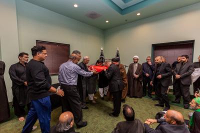 عندما تخفق رايةُ أبي الفضل العبّاس(عليه السلام) في أيّ بقعةٍ على هذه المعمورة، فإنّ هناك شعوراً لا إراديّاً ينساب في النفوس باعثاً فيها الأمان والسكينة والاطمئنان الروحيّ، فما أن وطئت أقدامُ وفد العتبتين المقدّستين الحسينيّة والعبّاسية الولايات المتّحدة الأمريكيّة حتى انهالت عليهما الدعوات من قبل المؤسّسات والمراكز الإسلاميّة، لأجل التشرّف بزيارتهما واستنشاق عبق هذه الأماكن الطاهرة والتبرّك بما حملوه اليهم وفي مقدّمتها راية قبّة قمر العشيرة أبي الفضل العبّاس(عليه السلام)، وكان من بين هذه الدعوات دعوة الحسينيّة الجعفريّة في ولاية مريلاند التي يقطنها جمعٌ كبيرٌ من محبّي وأتباع أهل البيت(عليهم السلام)، حيث قام الوفدُ بزيارتها تلبيةً للدعوة والتقى بجمعٍ كبير منهم.