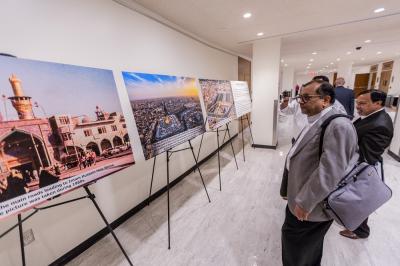 على هامش مشاركتهما في المؤتمر الدوليّ الذي أقامته العتبتان المقدّستان الحسينيّة والعبّاسية في مبنى الأمم المتّحدة بالتعاون مع مؤسّسة الإمام الخوئي(قدّس سرّه) والتحالف العلميّ للبحث والتراث في نيويورك، تمّ تنظيمُ معرضٍ للصور الفوتوغرافيّة توسّم بعنوان: (مهد الشهادة)، وقد تمّ اختيارُ الصور المعروضة في العراق من قبل لجنةٍ مختصّة وبما يتلاءم والحدث المُقام.