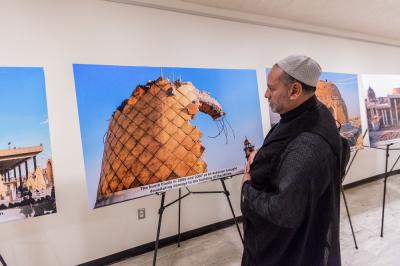 مبيّناً: "إنّ المعرض أيضاً يسلّط الضوء على دمار العراق ودمار تراثه الحضاريّ على أيدي عصابات داعش المتطرّفة، والمثابرة الجدّية والشجاعة لدى العراقيّين الذين حاربوا داعش وهم الآن يعيدون بناء بلدهم".