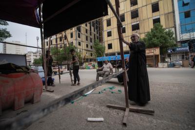 After completing all the administrative and security procedures supervised by the Department of Rituals and Hussayni Processions in Iraq and the Islamic World of the two holy shrines and the Karbala Directorate of Police, the service processions started erecting the tents and marquees in the allocated spaces for them on the main axes leading to the province.