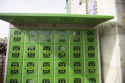 Dieser Arbeitsschritt erfolgte mit dem Ziel, den Stau an den Aufbewahrungsstationen soweit wie möglich zu minimieren. Jeder Schrank beinhaltet 30 Spinde, die mit Schlüsseln versehen sind, sodass die Besucher ihre Sachen ablegen und beruhigt ihre Ziyara durchführen gehen können.