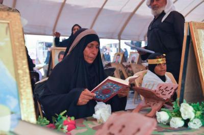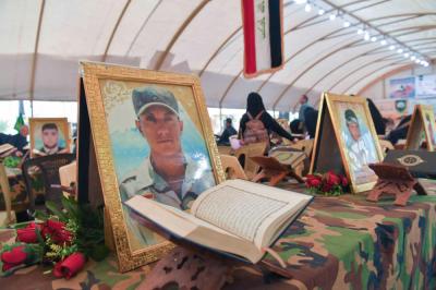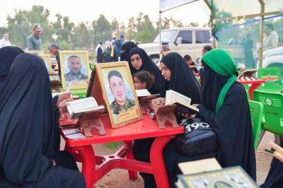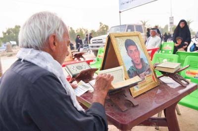 Hier waren sie vor einigen Jahren, auf dem Weg Karbalas, Teilnehmer der Arbaeen-Laufs, doch vor nicht allzu langer Zeit legten sie sich zwischen die Hände des Martyriums, um unser Land und unsere Heiligtümer zu beschützen. Am heutigen Tag sind wir körperlich von Ihnen getrennt, doch ihre Seelen befinden sich unter uns und begrüßen die Besucher des Herrn der Märtyrer und seines Bruders (Friede sei mit ihnen).