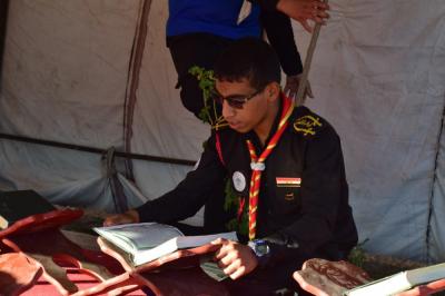 Le chef scout Younes Achour responsable de la tente coranique a expliqué au réseau mondial Al Kafeel en disant : « L’ouverture de cette est pour fournir un servie de lecture coranique et s récompense est dédiée aux martyrs d’Al Taf et d’Irak qui ont sacrifié leur vie et plus pour la religion, la sainteté et la réponse à l’appel de la Fatwa bénie contre les Takfiris ».