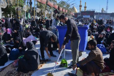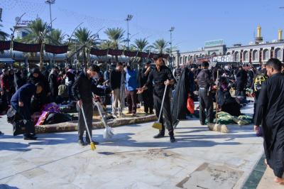 Kitengo cha eneo la katikati ya haram mbili tukufu kimeshiriki katika kazi ya kusafisha mitaa ya mji mkongwe wa Karbala hususan maeneo ya karibu na haram mbili tukufu, wameshiriki kwa wingi wakiwa na vifaa mbalimbali vya kufanyia usafi, wameondoa taka zote zilizo kuwa kwenye mapipa ya taka pamoja na kusafisha maeneo yeto yaliyo kaliwa na mawakibu katika kipindi cha ziara ya Arubaini.