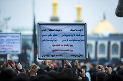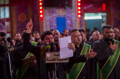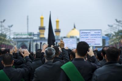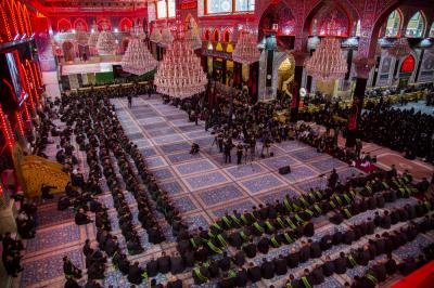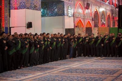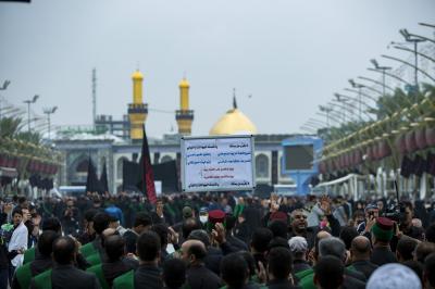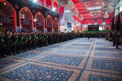 The servants of Aba al-Fadl al-Abbas (peace be upon him) have walked in an unified condolence procession from his holy shrine towards the shrine of the Master of martyrs (peace be upon both of them) passing by the area between the two holy shrines, to extend their condolences on this sad occasion; the martyrdom of the Holy Prophet who was sent as mercy to the two worlds (Allah's prayers be upon him and upon his holy Household), chanting slogans expressing the feelings of sadness and sorrow for the loss of the Holy Prophet (Allah's prayers be upon him and upon his holy Household).