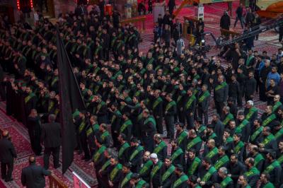This procession was led by the officials of the holy shrine who have participated along with the servants to extend their condolences. Once they entered the holy shrine of Imam al-Hussayn (peace be upon him), they were welcomed by its officials and servants and together, they held a condolence council for this tragedy.