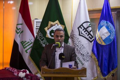 لتأتي بعدها كلمةُ عمادة كلية التربية في جامعة ميسان التي ألقاها الأستاذ الدكتور هاشم داخل الدراجي والتي أوضح فيها: "إنّ آفاق التعاون بين العتبة العبّاسية المقدّسة وكليّتنا ليست بجديدة، وإنّما تمتدّ لأكثر من عشر سنوات خلت، فقد كانت كلّيتنا البوّابة الأولى التي دخلت منها آفاق التعاون بين جامعة ميسان والعتبة المقدّسة، فكان لنا أملٌ كبير في التعاون المشترك، وها هي اليوم آفاق التعاون تنطلق من جديد ونأمل في المستقبل القريب أن تكون هناك فعّاليات أخرى مشتركة مع العتبة العبّاسية المقدّسة".