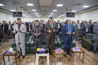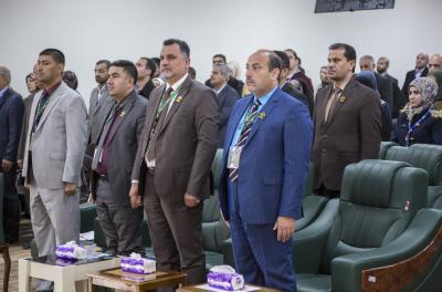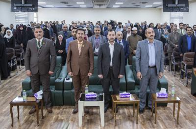بعد ذلك ابتُدئت الفترة الثانية التي تضمّنت الحفل الختاميّ للمؤتمر الذي احتضنته القاعةُ المركزيّة للجامعة، واستُهِلَّ بتلاوة آياتٍ من الذكر الحكيم ألقاها قارئ العتبة العبّاسية المقدّسة مسلم عقيل سلطان، أعقبتها قراءةُ سورة الفاتحة ترحّماً على أرواح شهداء الحشد الشعبي وقوّاتنا الأمنيّة ومن ثمّ الاستماع الى النشيد الوطنيّ العراقيّ ونشيد العتبة العبّاسية المقدّسة الموسوم بـ(لحن الإباء).