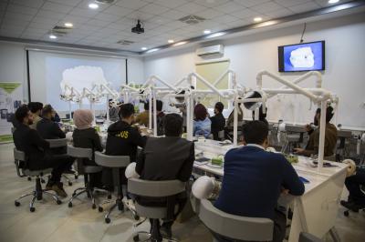 2. ورشة بعنوان: مهارات الجانب الجراحيّ في زراعة الأسنان/ ألقاها كلٌّ من الدكتور سامر مجيد والدكتور منتظر محسن والدكتور نورس بهاء من كلّية طبّ الأسنان في جامعة العميد.