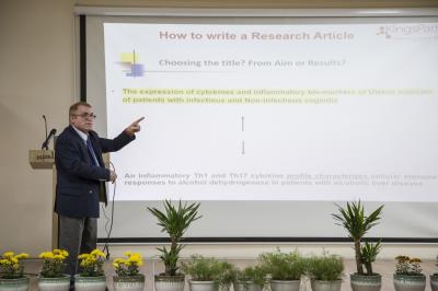 1. ورشة بعنوان: كيفيّة النشر في المجلّات العالميّة/ ألقاها الدكتور منذر حسين الكاظمي من معهد دراسات الكبد من إنكلترا.