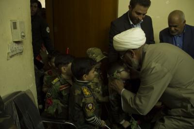Im Rahmen der Aktivitäten der Al-Ameed Schulen der Heiligen Abbasitischen Stätte, besuchten Schüler der Al-Saqi Vorschule und Durrat Al-Ameed Grundschule für Mädchen zum ersten Jahrestag des irakischen Sieges gegen Daesch den Sitz der Kampftruppe Al-Abbas und einige Märtyrerfamilien des Haschd Asch-Schabi, um sich nach ihrem Befinden zu erkundigen, die Fatiha für die Seelen der Märtyrer zu rezitieren und einige Geschenke zu überreichen.