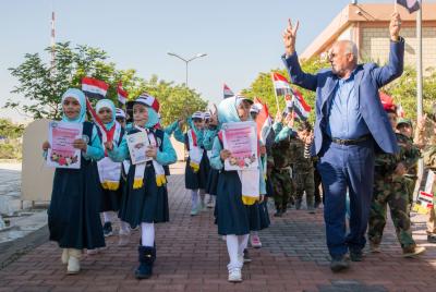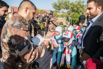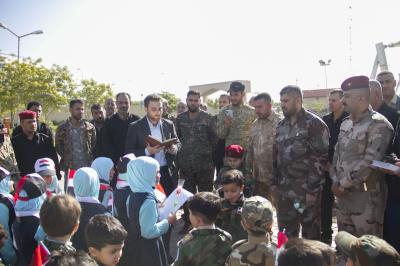 Auch fügte er hinzu: „Der Besuch dieser Schüler, um den Helden der Kampftruppe zu gratulieren und sie beglückwünschen, diese Helden, die Teil dieses Sieges gegen Daesch gewesen sind und an der Seite ihrer Brüder der anderen Kampfgruppen gestanden haben, dieser Besuch motiviert die Kämpfer und ermutigt sie dazu, die Verteidigung des Landes fortzusetzen und alles zu tun und zu geben, um das Land von allen Formen der Gewalt und des Terrorismus zu befreien.“
