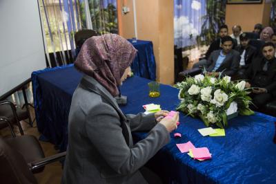 اما بخش دوم جلسه، برای پاسخ به سوالات دانشجویانی که سوالات خود را بر روی کاغذهایی نوشته بودند اختصاص یافته بود و آقای الموسوی به این سوالات پاسخ داده و آنها را تشریح کرد.