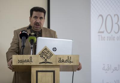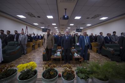 The symposium began with the recitation of verses from the Holy Quran, followed by the recitation of Surah al-Fatiha in memory of the martyrs of Iraq, then listening to the Iraqi national anthem and the anthem of the al-Abbas's (p) fighting squad "Pride's tune". Followed by the word of the university's president; Dr. Jasem al-Marzougi. And then the word of the Vice President of the Arab Federation of Libraries; Dr. Saif Ibn Abdallah al-Jabri.