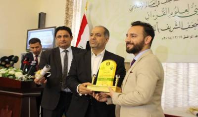 Zum Schluss der Feier bedankte sich Seine Eminenz Sayed Alaa Al-Moussawi bei den Anwesenden und zeichnete die Mitglieder des internationalen Komitees zur Kontrolle des Heiligen Buches in der islamischen Welt aus, sowie die Verwalter des nationalen Zentrums für Koranwissenschaften, den talentierten Kalligraph Hadi Al-Darraj und die restlichen Ausschüsse.