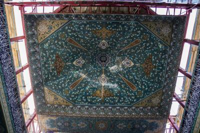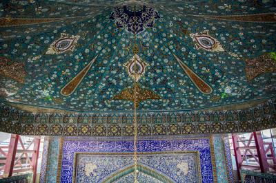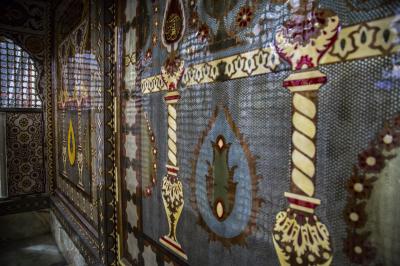 - Die Zelte sind mit einer Reihe von Inschriften, islamischen Vergoldungen und Koranversen versehen. Jedes Zelt enthält etwa 12 Fenster und das Hauptzelt enthält Fenster mit einer Breite von 2 Metern.