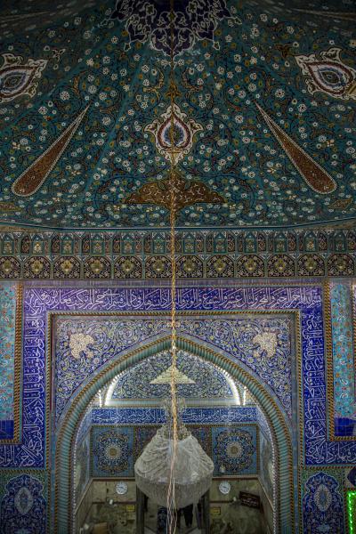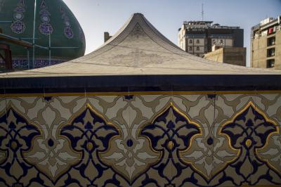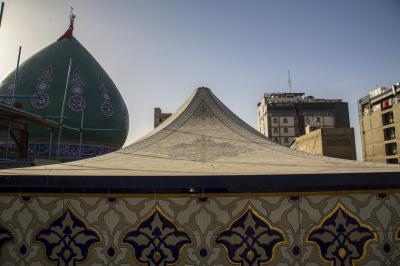 - Die Überdachung des heiligen Lagers besteht aus fünf ähnlichen Zelten (10 x 10 m), zusätzlich zu dem großen Hauptzelt an Haupteingangstor, das das Zelt von Imam Hussein (Friede sei mit ihm) darstellt.