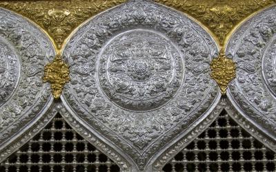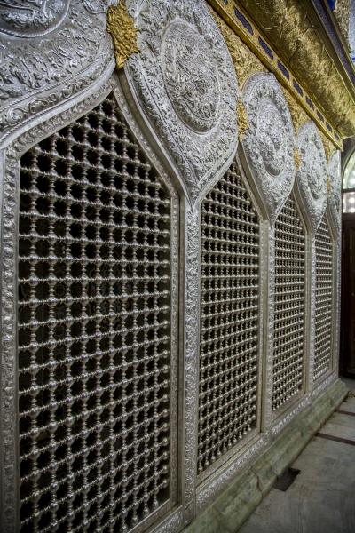 - Die Entfernung des Holzgitters von Abu Fadl al-Abbas (Friede sei mit ihm) im Inneren des husseinitischen Lagers und seine Ersetzung durch ein neues Gitter aus Gold und Silber.