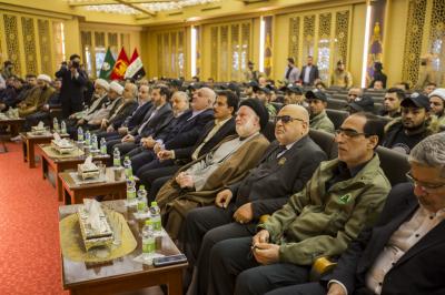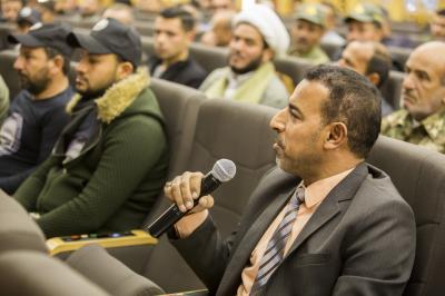 المؤتمر الذي استُهِلَّ بتلاوة آياتٍ من الذكر الحكيم شهد حضوراً غفيراً لوفودٍ وشخصيّات مثّلت جهاتٍ عديدة، من ضمنهم مدرّبو الأكاديميّة والمتدرّبون، وبعد قراءة سورة الفاتحة ترحّماً على أرواح شهداء العراق الأبرار والاستماع للنشيد الوطني ونشيد العتبة العبّاسية المقدّسة، كانت هناك كلمةٌ للعتبة العبّاسية المقدّسة ألقاها بالنيابة السيد عدنان الموسويّ من قسم الشؤون الدينيّة، جاء فيها:"كما تعرفون عندما نقرأ تاريخ الحروب تكون هناك جملةٌ من التدريبات للجنود، وأهمّ ما يُدرّب عليه هذا الجنديّ هو ممارسة الفنون القتاليّة في جميع صنوف الأسلحة، وقد تطوّرت الحروب ومعها تطوّرت الأسلحة المستخدمة فيها، فأصبح أهمّ ما يتدرّب عليه الجنديّ هو الانضباط العسكريّ ثمّ التدريب البدنيّ ثمّ التدريب على ممارسة استخدام الأسلحة وكلٌّ حسب اختصاصه، وهذه من أهمّ الجوانب التي يتدرّب عليها الجنديّ لمتابعة باقي الكلمة اضغط هنا
