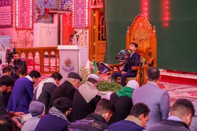 This blessed Quranic forum, which was attended by a group of lovers of the Book of Allah and the mourners about the tragedy of Lady az-Zahra (peace be upon her), was held with the participation a group of readers, whose recitations embraced the dome and minarets of the holy sanctuary of Aba al-Fadl al-Abbas (peace be upon him); They were: the reader of al-Abbas's (p) Holy Shrine; Faysal Matar, and the reader Ahmad al-Zameli one of the readers of the Institute branch in Najaf, and the reader Sayf Humam one of the talented readers of the project of Prince of readers in Najaf, and the forum was concluded with the voice of the Radood Qasim al-Jabouri, who read elegies about the tragedy of Lady Fatima az-Zahra (peace be upon her).