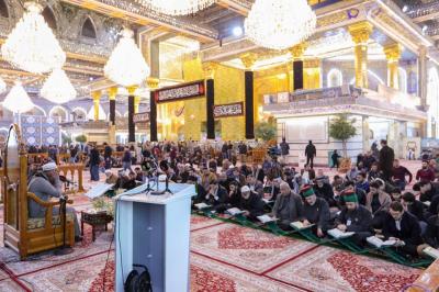 In continuation of the its series of forum inviting Quranic Institutions from inside and outside the province of Karbala, a delegation of the Al-Jawadayn Quranic Foundation from Diwaniyah province was the guest of the weekly Recitations' Throne Forum, which is held in the courtyard of Aba al-Fadl al-Abbas (peace be upon him) with the participation of a group of readers.