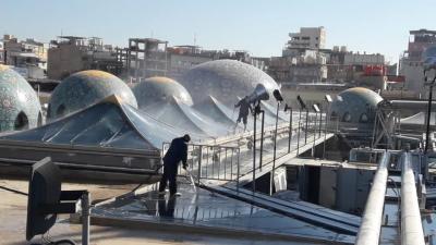 - - Mukaddes Ziyaretgâh’ın ana avlusunun çatısının üzerinde yer alan kubbeler temizlendi.