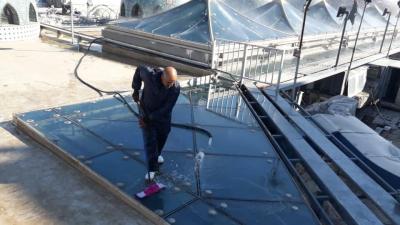 - - Çadırların tüm bölümlerine ve aralarındaki cam parçalarına yönelik topyekün temizlik yapıldı.