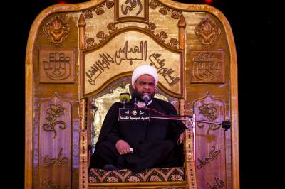The council, which was held after the evening prayers, begins by reciting verses from the Holy Quran and a religious lecture delivered by Sheikh Abdullah al-Dujayli that sheds light on some of the noble and lofty contents and values that characterized the personality of Om al-Baneen (peace be upon her). After the end of the lecture, a lamentation [Latm] council was held by Haj Basem al-Karbala'i, chanting poems and elegies about the greatness, status, patience and jihad of this character in the way of Allah by sacrificing her four sons for the sake to support Imam al-Hussayn (peace be upon him).